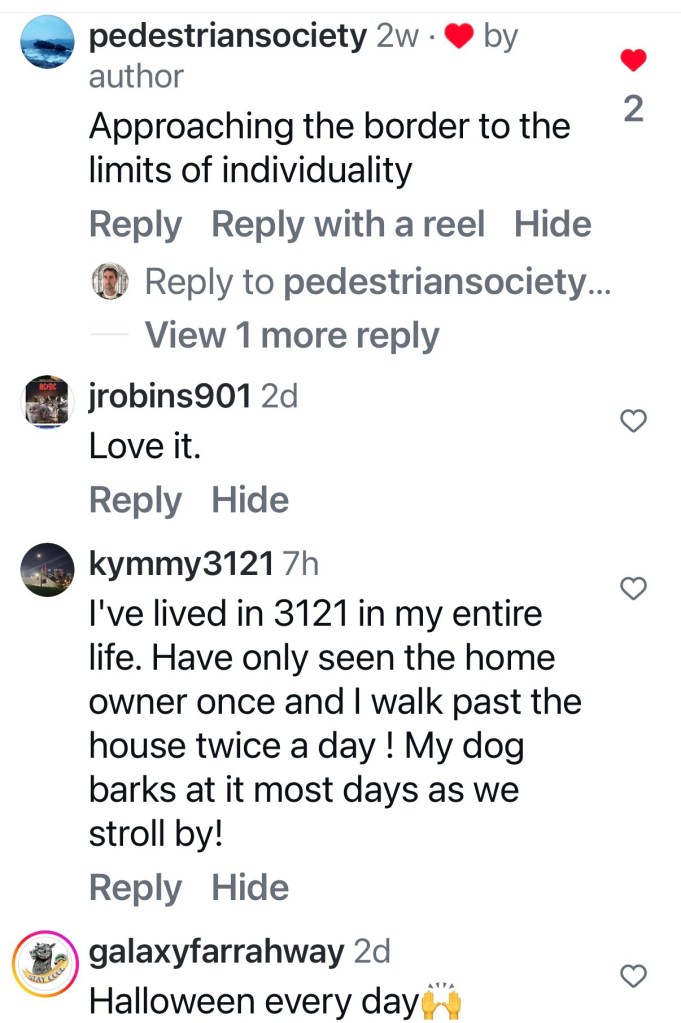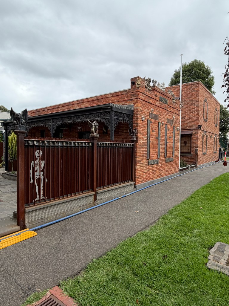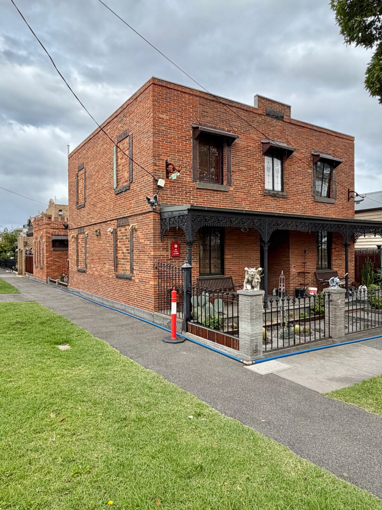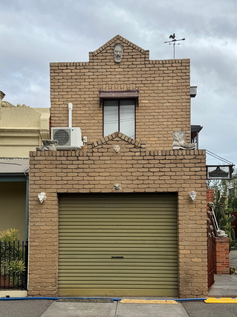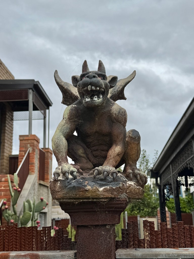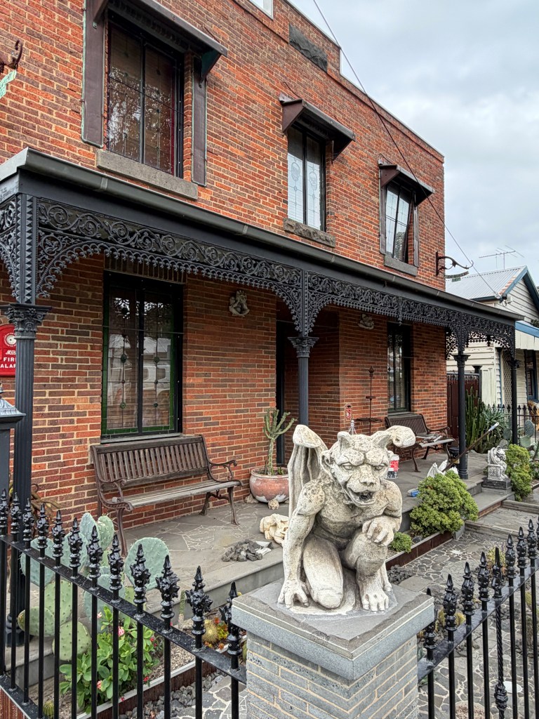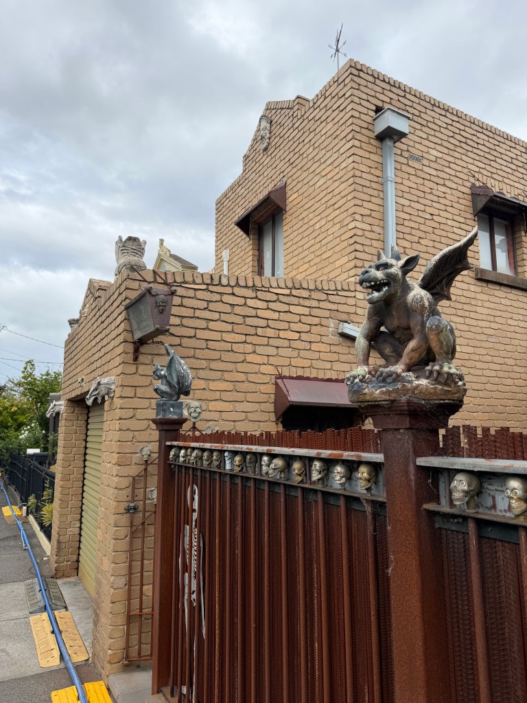 I guess the corner of Highett and Gardner Streets in Richmond is as good a place as any for someone with a devil obsession to live. Quite a collection of little monsters, skulls etc sprinkled across a particularly ordinary vaguely Victorian maybe 1980s brick box. Great cactus garden too.